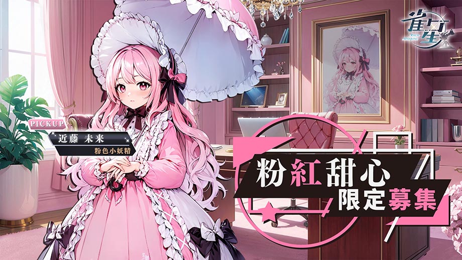 「粉色小妖精 近藤 未來」期間限定機率提升中,邀請雀士們一同走進她夢幻又閃耀的粉色世界,感受偶像級的甜蜜魅力!