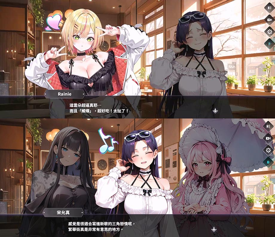在《雀星》遊戲中,玩家可透過贈送禮物與Rainie(林雨雯)、宋允真兩位角色培養好感度。隨著親密度提升,除可以解鎖角色專屬語音以及華麗造型外,還能開啟角色支線故事,與Rainie、允真共度浪漫時光,體驗只屬於彼此的甜蜜互動……♥