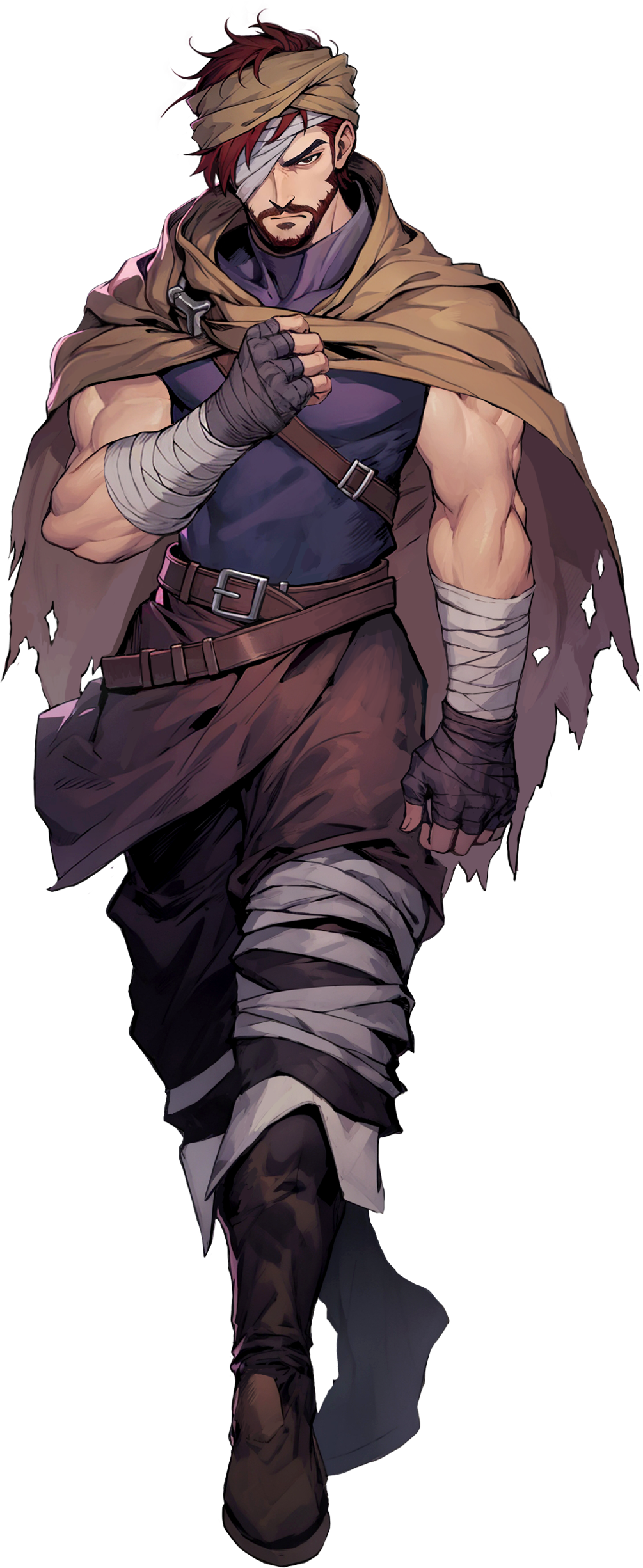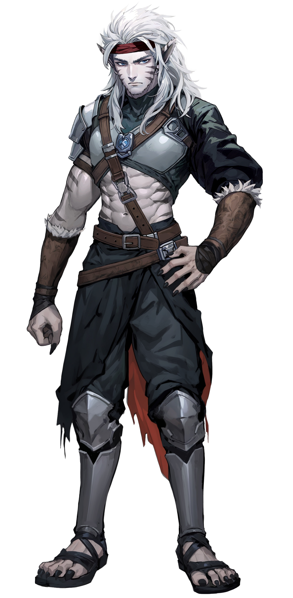 半獸人弓箭手,成為傭兵前曾為巴格拉姆的軍人,出身混血,從小面對偏見與排擠,塑造了他冷靜理性、內斂沉穩的性格。他忠於自己的信念與摯友,行事低調但不失堅毅。