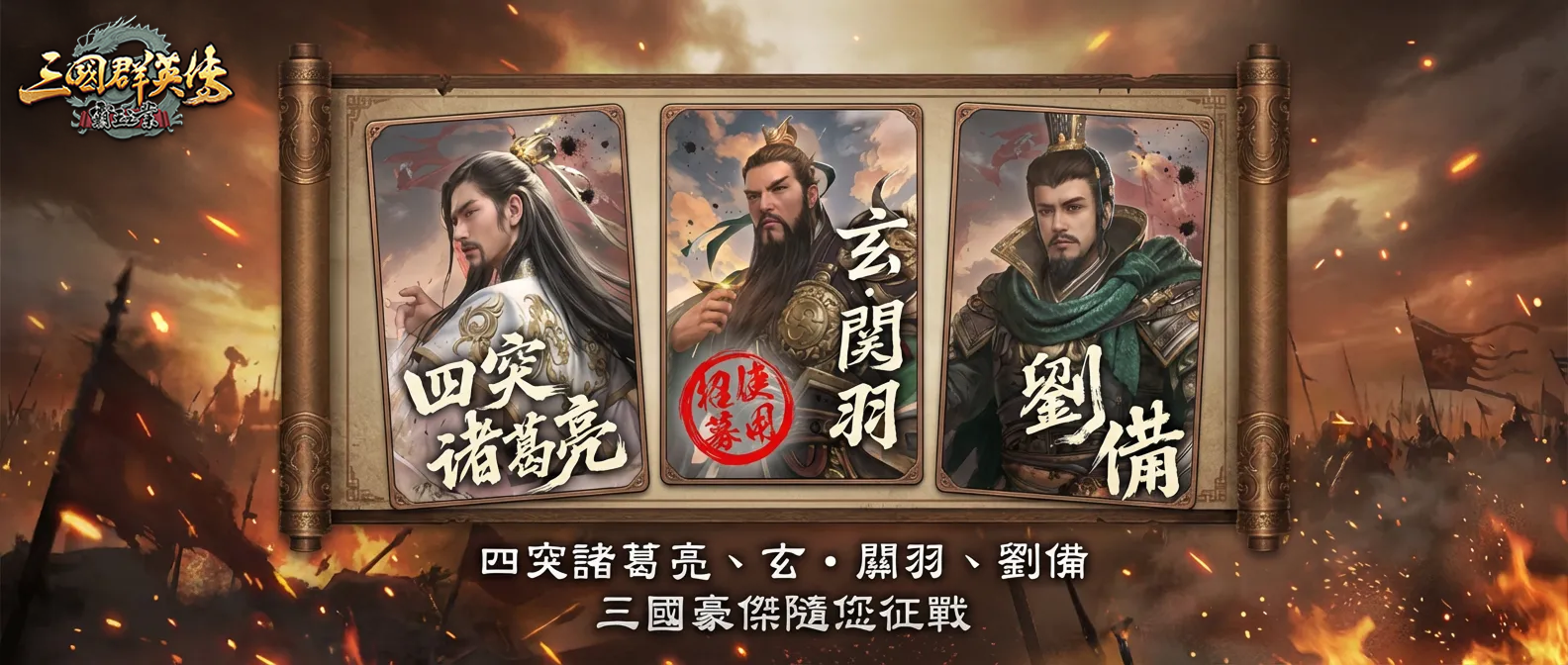 更有劉備、玄・關羽等傳奇名將強勢現身,助您征戰四方、勢不可擋!