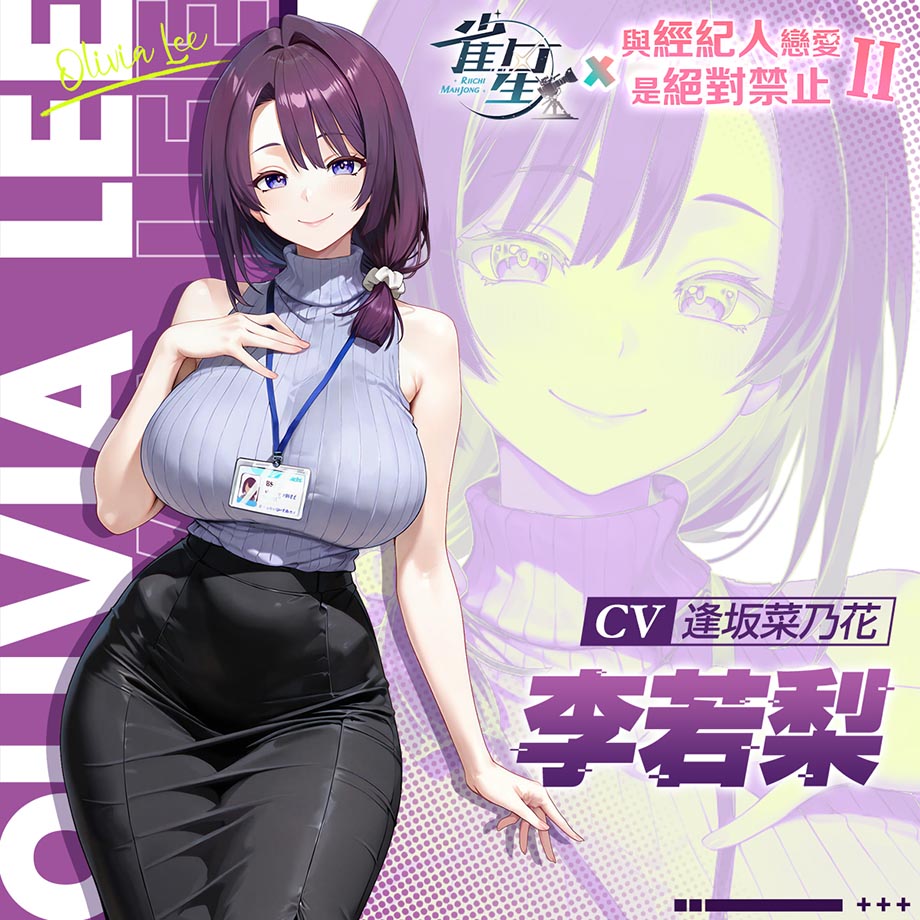在本次聯動中,《與經紀人戀愛是絕對禁止2》的人氣角色夏又晴與李若梨,將於《雀星》中實裝全日文配音!由風花ましろ飾演夏又晴、逢坂菜乃花飾演李若梨,強勢美女 vs 溫柔人妻,完整展現兩位角色不同的魅力,為玩家帶來臉紅心跳的沉浸式體驗!